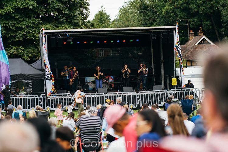Off stage, further entertainment was provided by Festival Theatre’s ‘Elephant Puppet’, a life size elephant that interacted with the crowds posing for selfies. Also available was the Playground Project who provided free musical workshops for early years and parents / guardians. In addition there were a number of community and charity stalls who were raising awareness of their services. There was also a range of mouth-watering food and drink from around the world which was supplied by local traders. Deputy Lieutenant Nick Fisher and the Mayor of Tunbridge Wells, Cllr Nancy Warne were in attendance and brought a sense of civic pride to the proceedings.